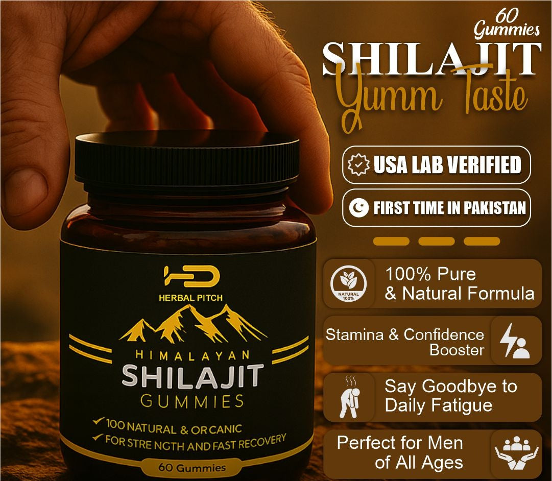 Shilajit Gummies For the first time in Pakistan, enjoy pure Himalayan Shilajit in a sweet and tasty gummy.100% Natural and Organic — perfect for energy, strength, and quick recovery, without the bitter taste